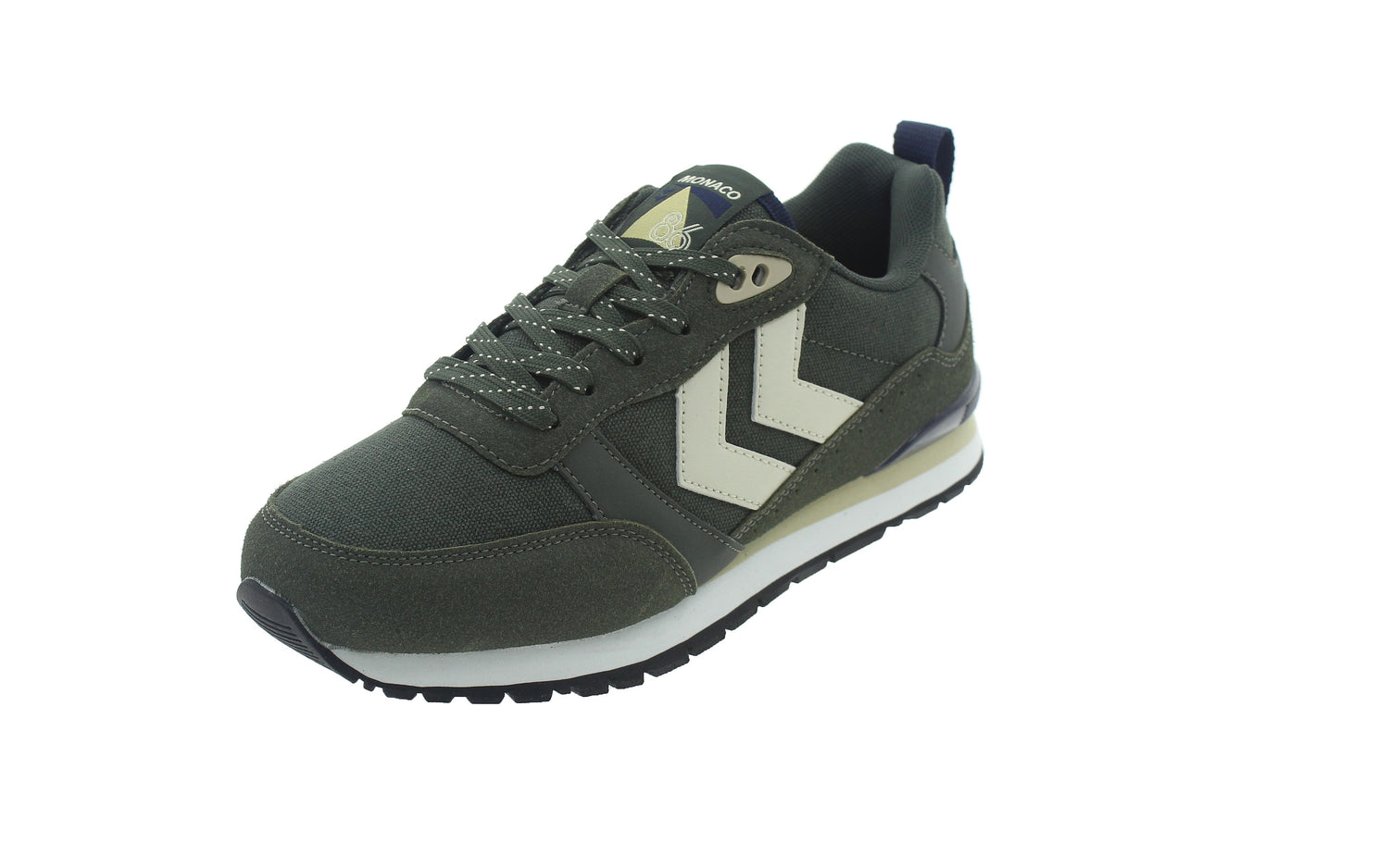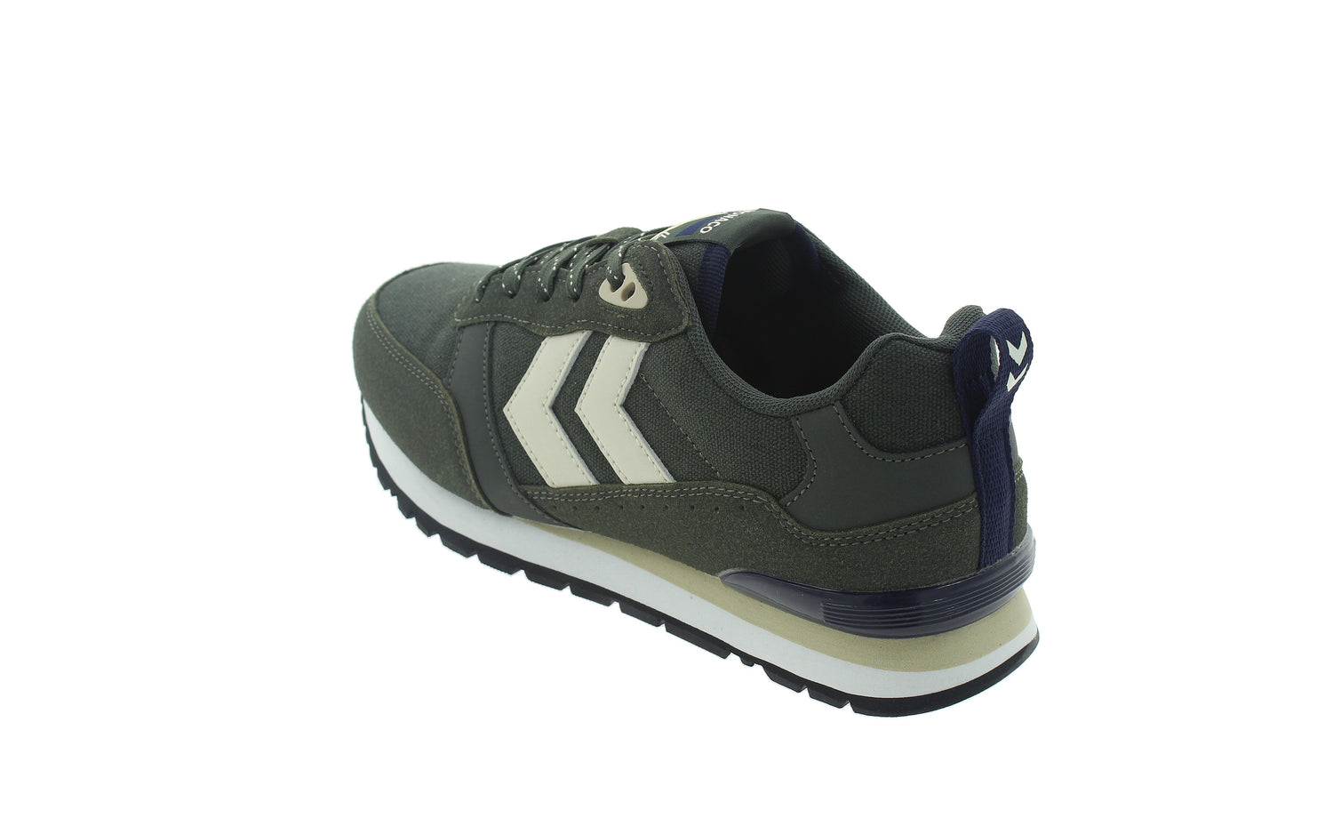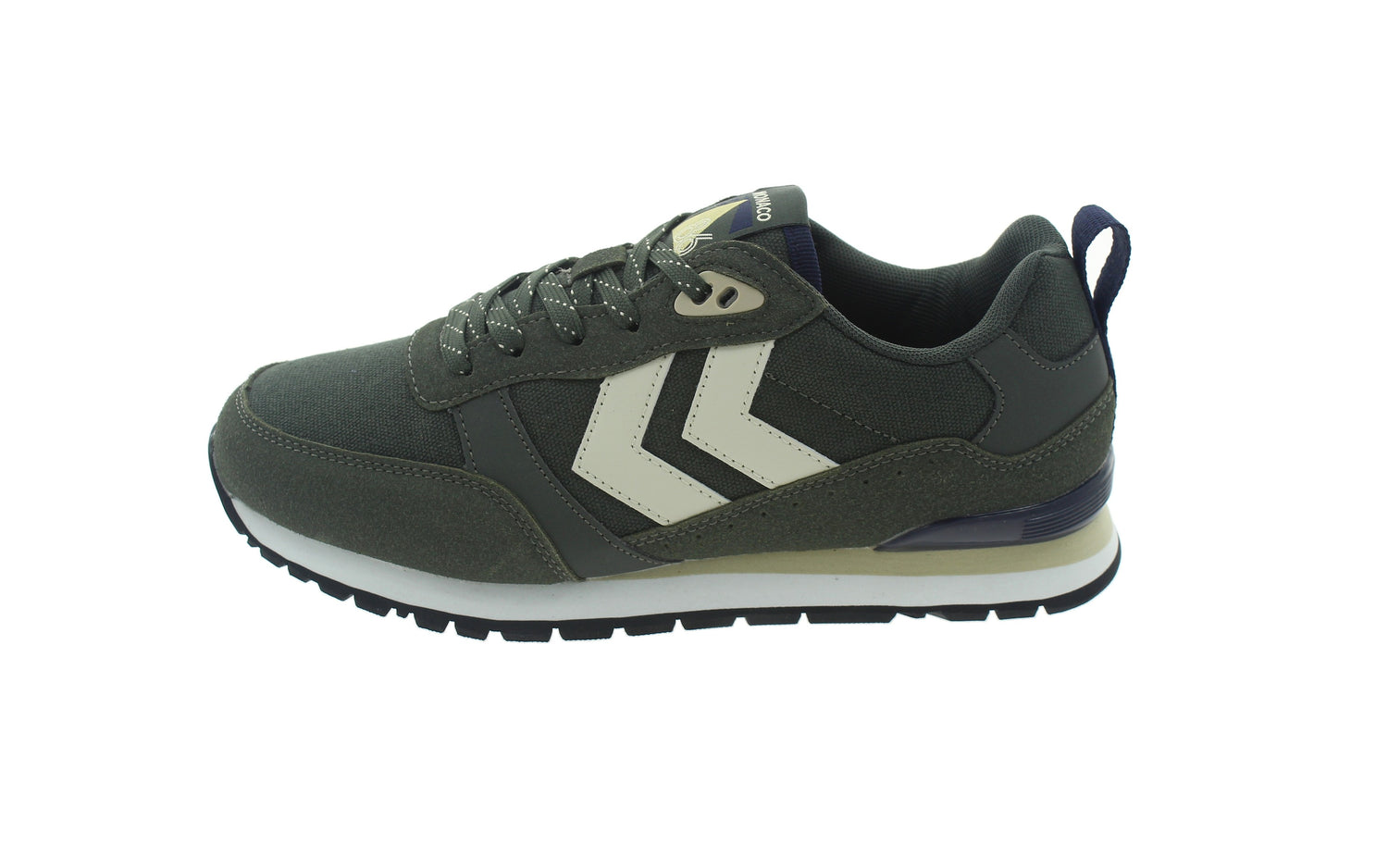 - Detalle con el icónico logo HUMMEL en beige en los laterales.