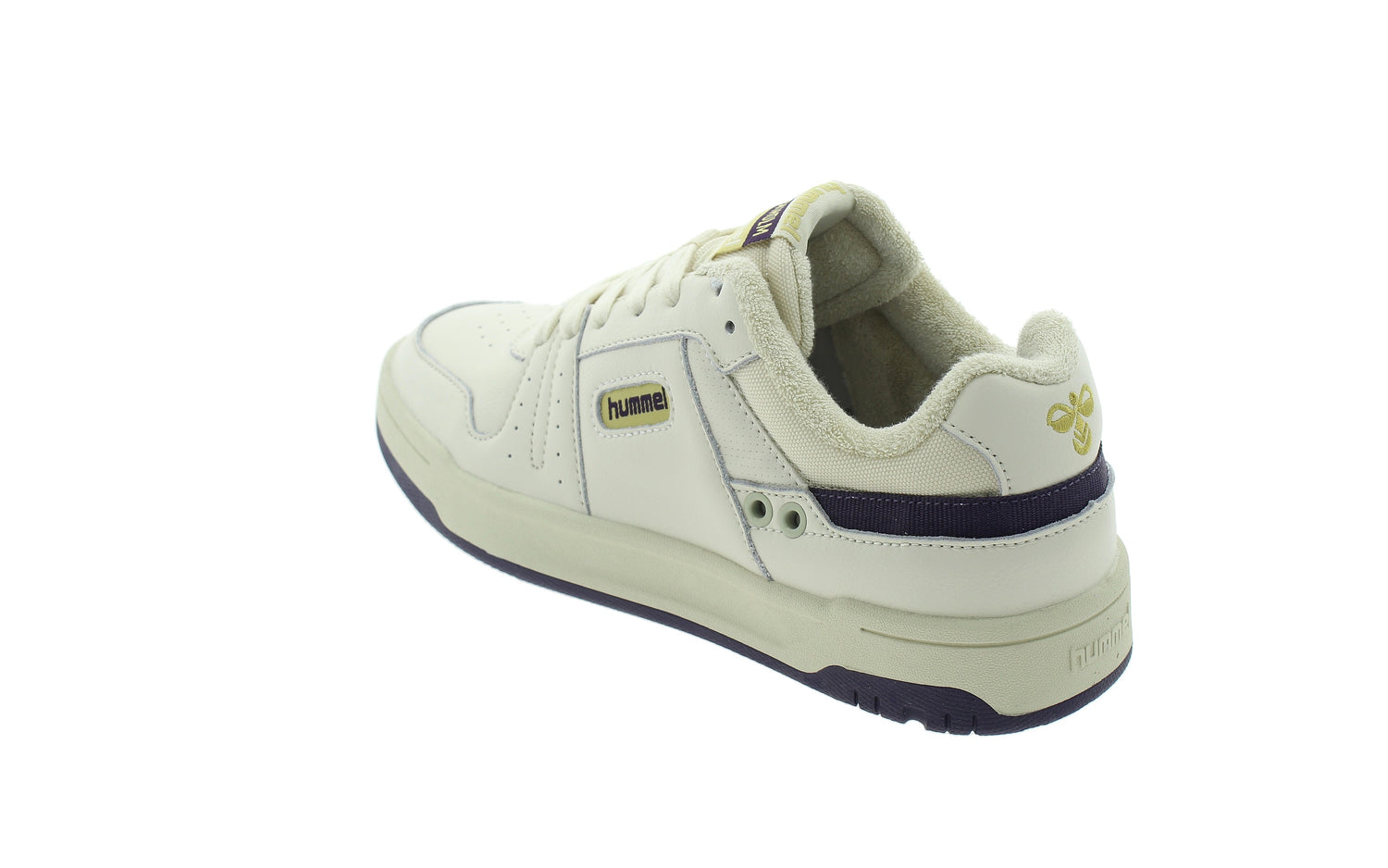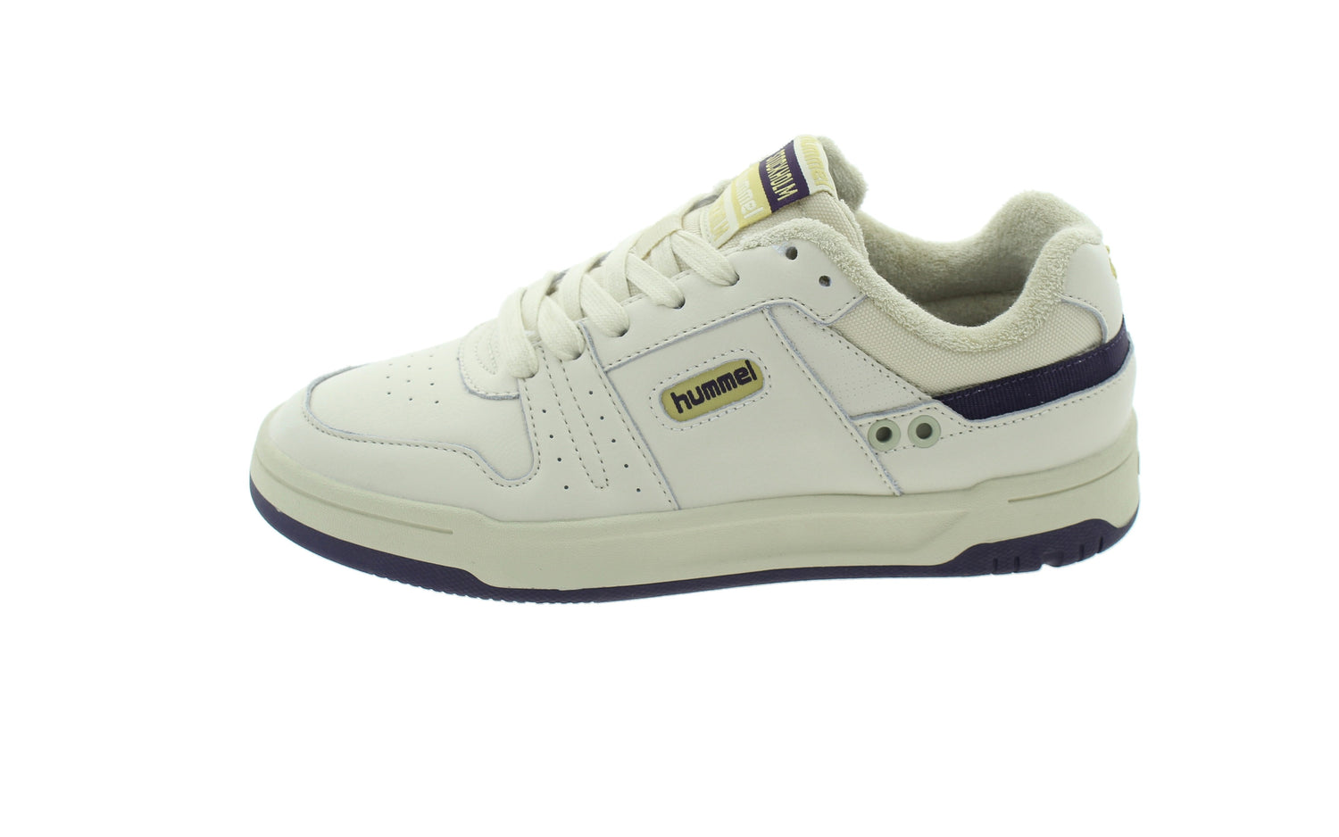 - Color beige con detalles HUMMEL en morado.