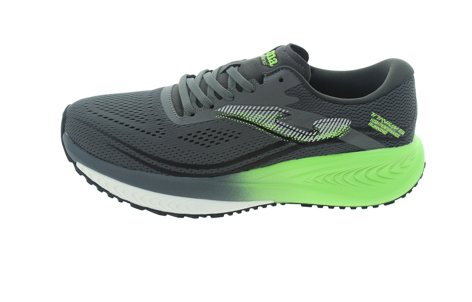 La zapatilla JOMA TITANIUM 2412 GREY GREEN es una zapatilla de running unisex para tus entrenamientos regulares de media distancia, para corredores de pisada neutra, que incorpora tecnología que aportan una amortiguación reactiva y que mejoran la flexibilidad y el ajuste.