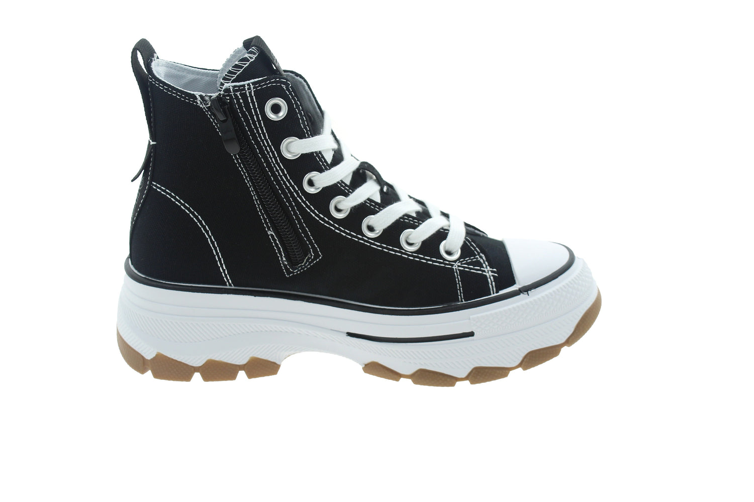 - Cierre mediante cordones y cremallera lateral.