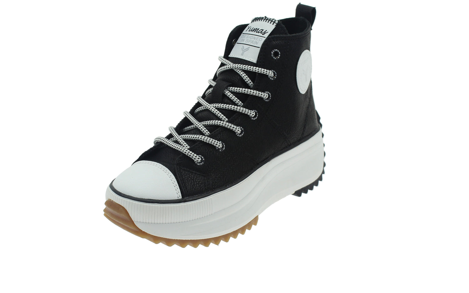 La zapatilla YUMAS NAHLA es una zapatilla casual para mujer, estilo All Star muy ligera y cómoda, fabricada en piel sintética con doble suela y logotipo YUMAS en el lateral. Unas zapatillas ideales para el uso diario.